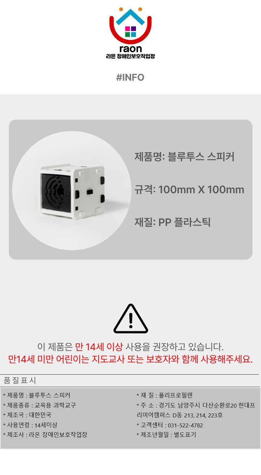 대표 : 박정민 | 상호명 : 라온 장애인보호작업장 | 대표번호 : 031-522-4782 | fax : 031-522-4783 | 통신판매신고업 번호 : 2023-다산-1031