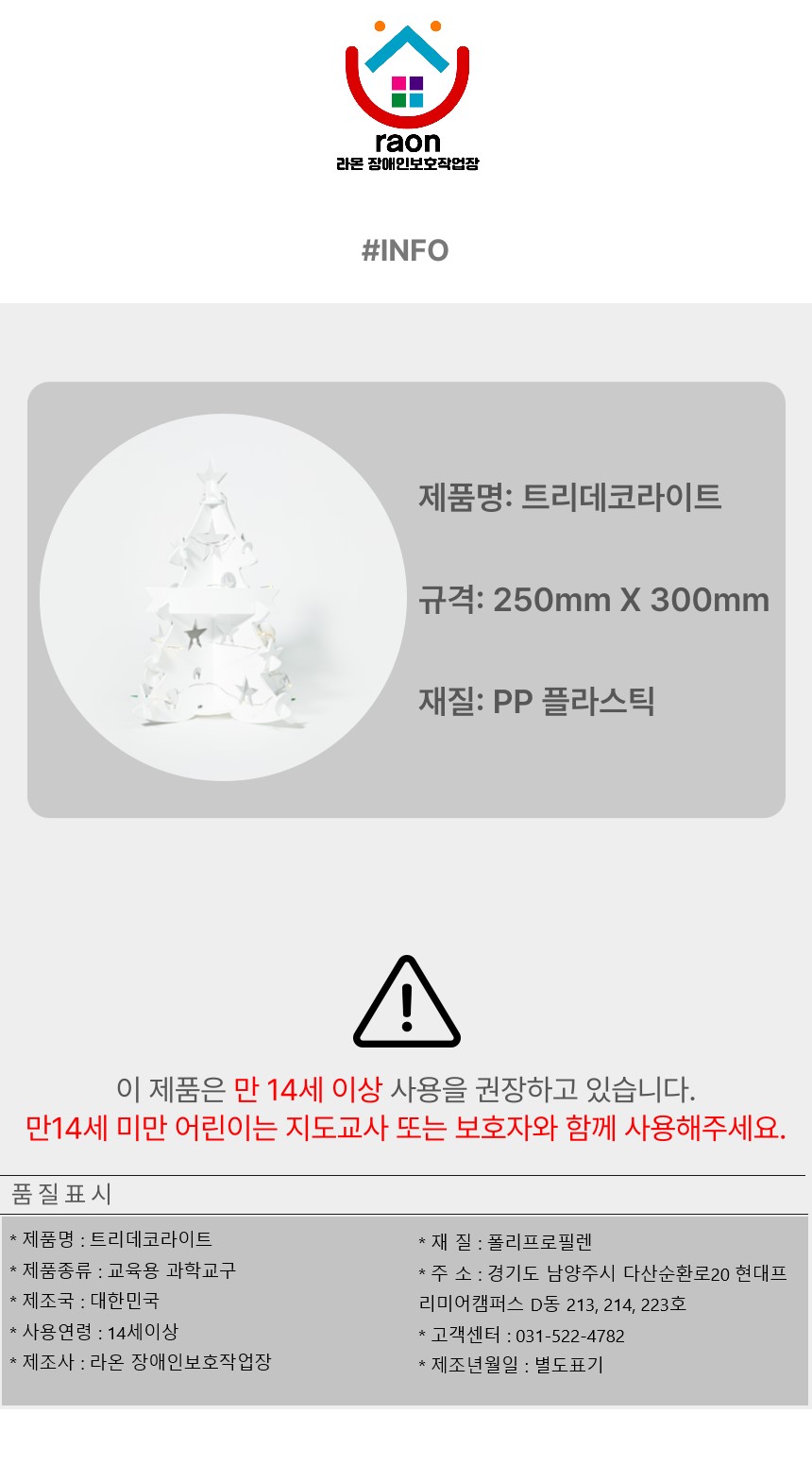 대표 : 박정민 | 상호명 : 라온 장애인보호작업장 | 대표번호 : 031-522-4782 | fax : 031-522-4783 | 통신판매신고업 번호 : 2023-다산-1031